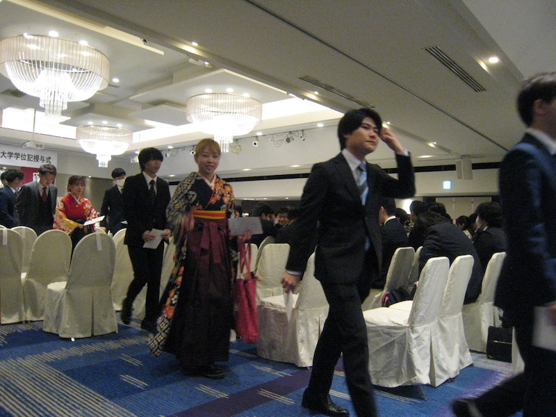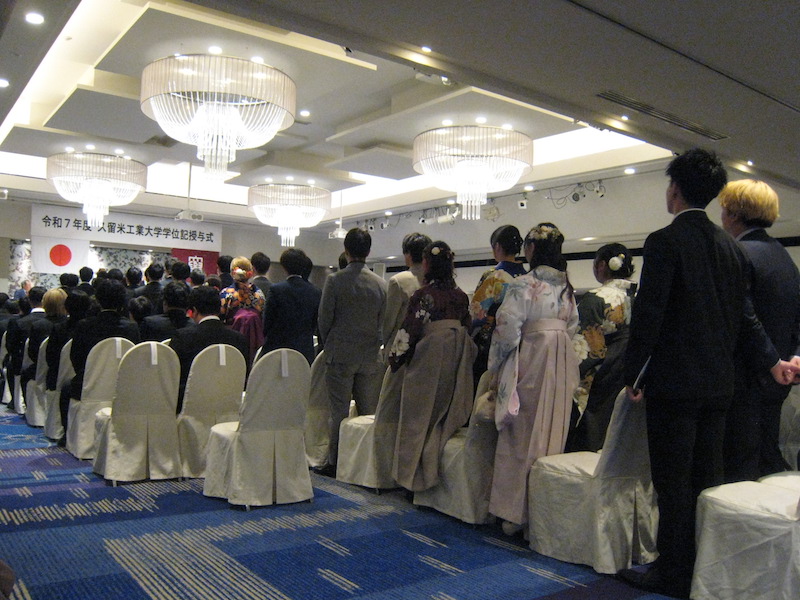 久工大の卒業式が開催されました。教育創造工学科の四年生三十一名が卒業しました。今年は市内のホテルでの開催でした。