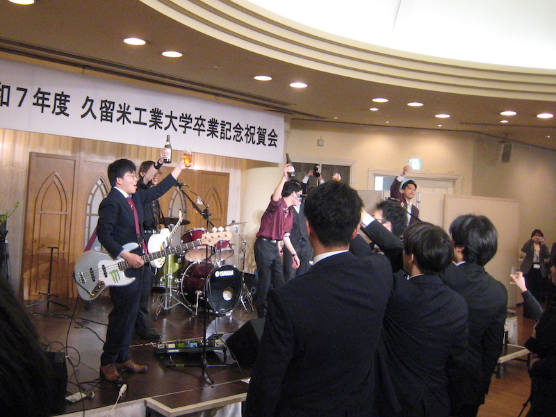 卒業式の後、卒業記念祝賀会が行われました。重音楽部のライブも行われました。